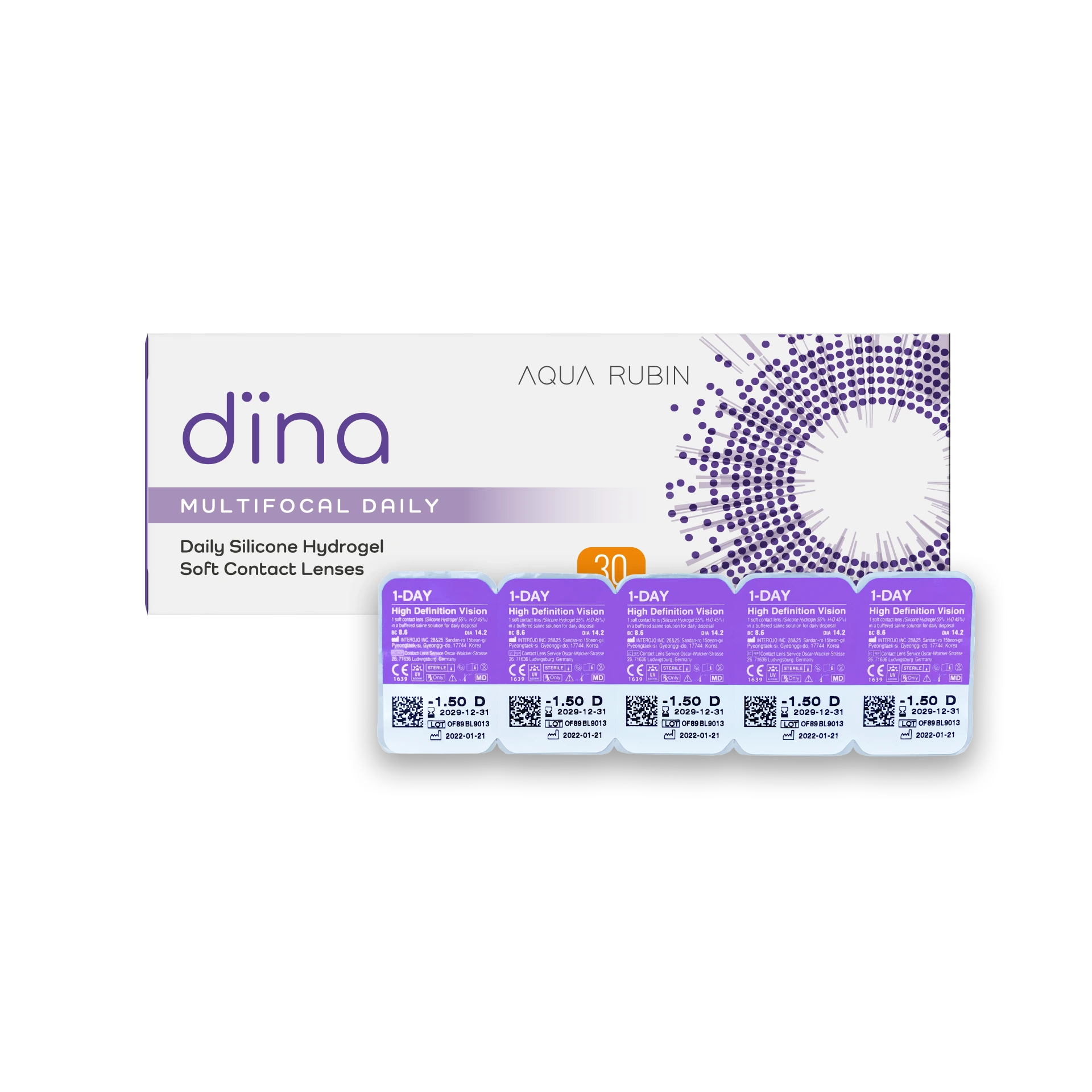Die Aqua Rubin – Dina Tageslinse ist eine Silikon-Hydrogel-Linse, mit besonders hohem Wassergehalt und einer hervorragenden Sauerstoffdurchlässigkeit, welches die Linse hochgradig atmungsaktiv macht. Durch den täglichen Wechsel der Linse entstehen keine Ablagerung und es ist möglich, den hohe Tragekomfort über die komplette Tragedauer aufrechtzuhalten.