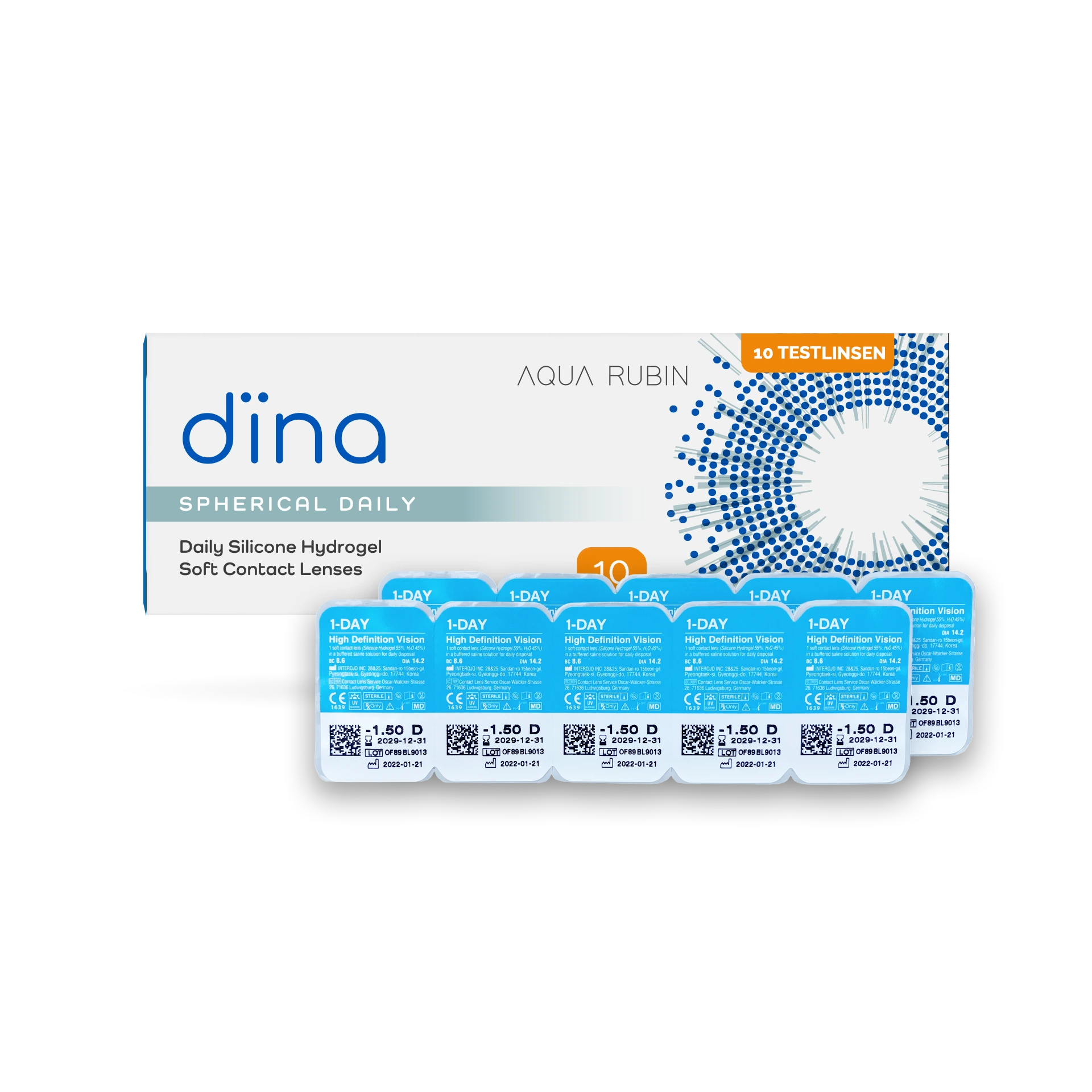 Die Aqua Rubin Dina Tageslinse gibt es in den Packungsgrößen: 10er, 30er, 90er, 180er Packung.